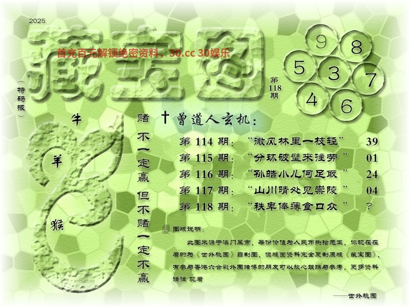 122期藏寶圖新:割鲜籍草酒淋漓 老:日暮沙场飞作灰 禁:猴 禁:0尾 玄機字:《将》