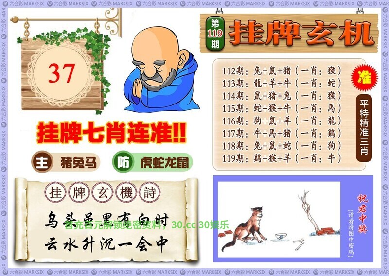 | 118期:⑧肖【猴虎猪马兔牛狗鸡】开:猪31准 |