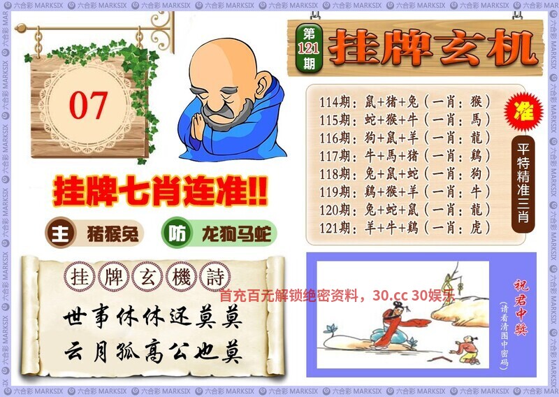 122期无字天书:三通鼓角四更鸡,日色高升月低微。猴20