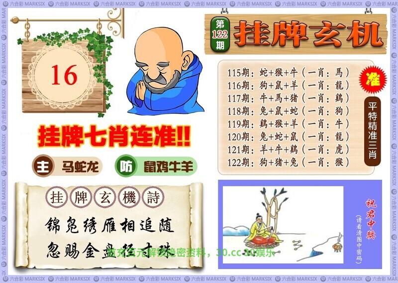 122期开奖时间2025年11月16(星期日)晚9:30开(农历九月廿七 牛冲羊)